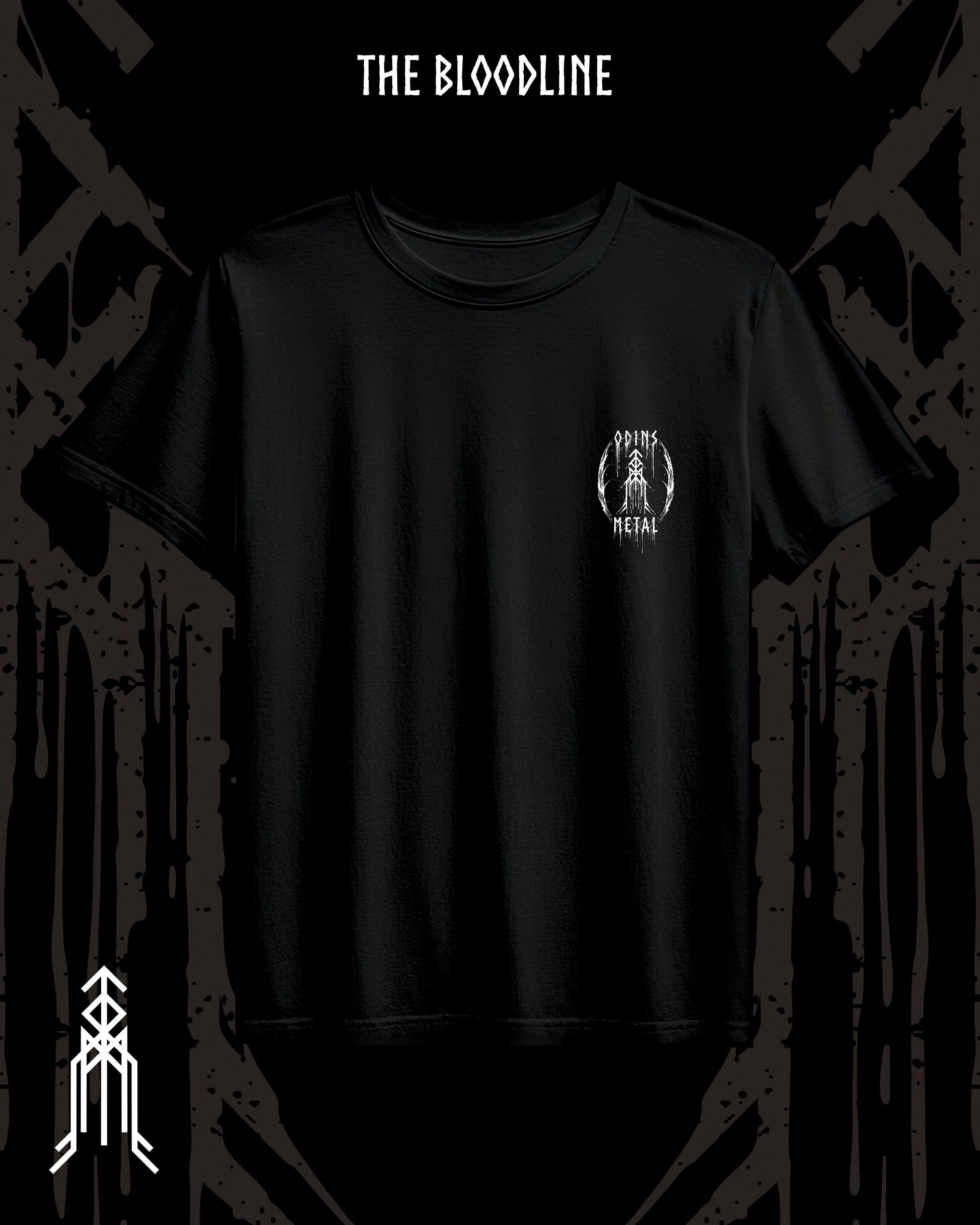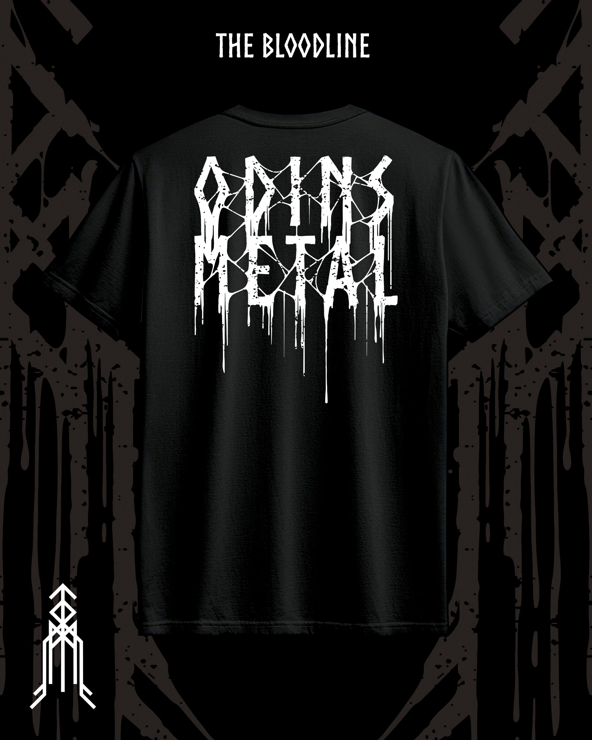The Odins Metal custom Bloodline T Shirt features striking large Norse text taking inspiration from the Heavy Metal album covers of the 80's & 90's.